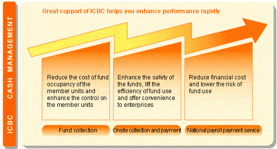 The restaurants with large operating incomes will open the accounts in the nearest ICBC's outlets, and then ICBC assists the enterprise to realize daily centralization of operating incomes of the restaurants through automatic fund collection function of the internet banking.
