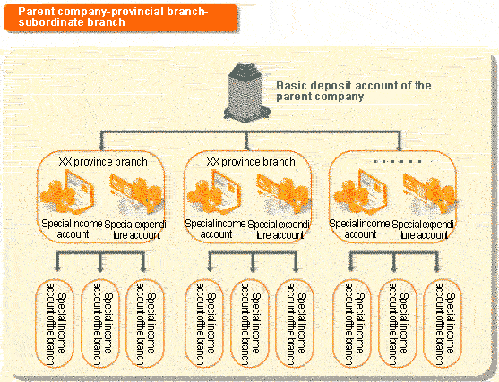 In order to payment and collection management, ICBC designs a financial management mode of "separation of expense from income". The parent company of the enterprise establishes a basic account in ICBC, the branches of the levels establish special income and expenditure accounts in local ICBC branches respectively; the parent company carries out the strictly management of "separation of expense from income": the income accounts are only used in incomes and the expenditure accounts are only used in expenses. (2)Management of "Separation of Expense from Income"